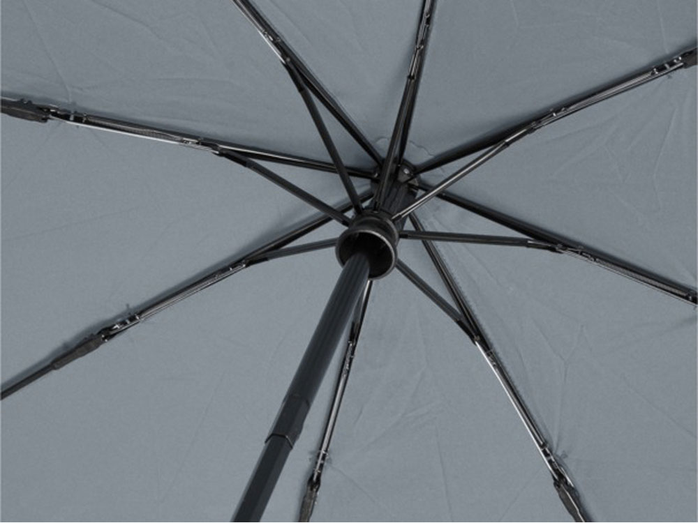 Автоматически открывающийся и закрывающийся зонт с куполом из эпонж полиэстера и переработанного ПЭТ-пластика. Прочный металлический стержень, высококачественная рама со спицами из стекловолокна, обеспечивающая максимальную гибкость в ветреную погоду. Поставляется с чехлом и может легко поместиться в сумку или рюкзак для удобного ношения.