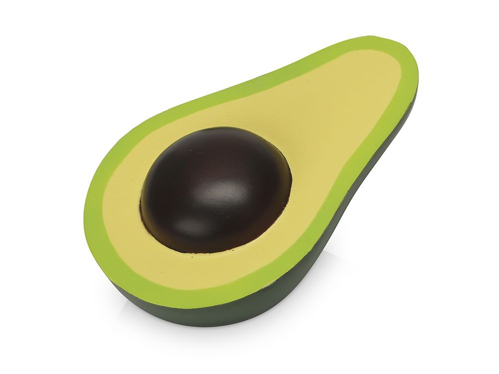 Фруктовый антистресс поднимет настроение не только детям, но и их родителям. Мягкий, но при этом плотный материал упруго мнется в руке, не повреждаясь, благодаря чему изделию обеспечен длительный срок службы. Авокадо мягкое, с выпуклой мягкой косточкой, окрашенной в коричневый цвет. Наружная поверхность — глянцевая, напоминающая кожуру авокадо, а более светлая мякоть — более матовая. На поверхность антистресса можно нанести изображение методом УФ-печати и гравировки.