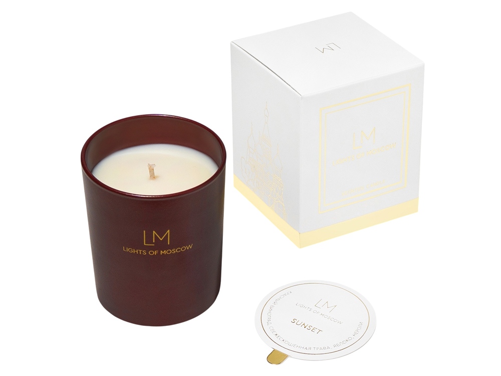 Коллекция аромасвечей Exclusive является уникальной не только из-за ароматов коллекции, но и благодаря тщательно разработанному дизайну упаковки, которая является напоминанием о том, что бренд Lights of Moscow - это ручное российское производство в самом центре Москвы. Белая коробка оформлена ярким золотым фольгированием, на левой стороне которой изображен Храм Василия Блаженного - одна из главных достопримечательностей на Красной площади в Москве. Ассоциации с теплым вечером, красивым закатом с бокалом красного вина и душевными разговорами. Тонкий, но насыщенный винный аромат с нотами красного винограда, свежего, сочного зеленого яблока и сладковатыми, цитрусовыми цветами нероли. В дополнении звучат аккорды зеленой, свежескошенной травы. Ноты: красный виноград, свежескошенная трава, яблоко и нероли. Комплектность: - Свеча в окрашенном стакане спечатью на стакане - 1 шт. - Подарочная эксклюзивная коробка с ложементом и репсовой лентой - 1 шт. - Пыльник - 1 шт. Условия хранения: — Свечи, аромасаше, аромадиффузоры, SPA-наборы следует хранить при температуре +18…+24 °C, вдали от источников тепла, сквозняков и прямых солнечных лучей. — Рекомендуемая влажность — не более 50%. — Избегайте длительного воздействия яркого света.