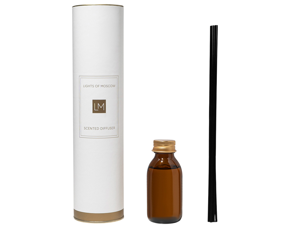 Диффузоры - это простое, изящное и долговременное решение, как наполнить пространство приятным ароматом. Для аромадиффузоров Lights of Moscow используем премиальные ароматизаторы из Европы и США, экологичную базу, фибровые палочки и качественную тару. Стойкая пряная композиция, главным действующими лицами которой стали черный перец, дымная амбра и свежее масло нероли, обволакивающие пространство горьковатой полупрозрачной вуалью. Верхние ноты: черный перец Средние ноты: амбра Базовые ноты: нероли Комплектность: - Подарочный брендированный тубус - 1 шт. - Колба янтарная стеклянная с жидкостью - 1 шт. - Фибровые палочки, запечатанные фирменной наклейкой LM - 7 шт. - Инструкция - 1 шт. - Открытка - 1 шт. - Упаковочная бумага - 1 шт. Условия хранения: — Свечи, аромасаше, аромадиффузоры, SPA-наборы следует хранить при температуре +18…+24 °C, вдали от источников тепла, сквозняков и прямых солнечных лучей. — Рекомендуемая влажность — не более 50%. — Избегайте длительного воздействия яркого света.