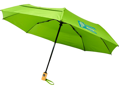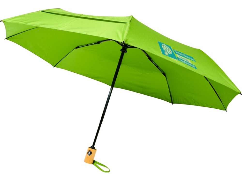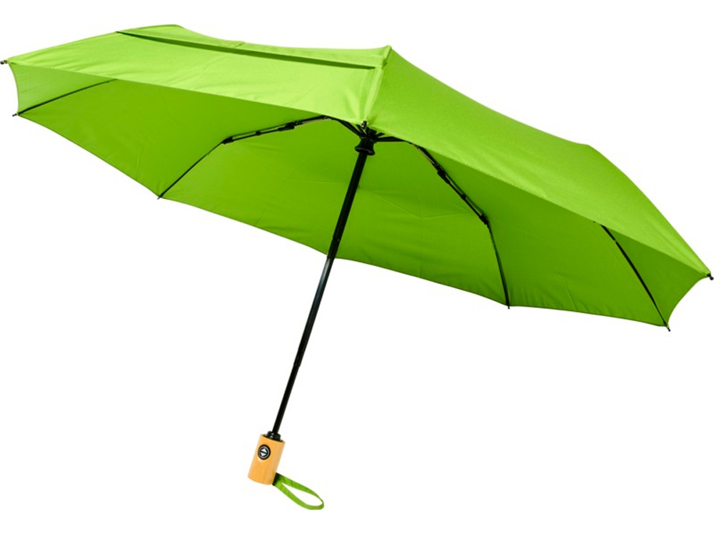 Автоматически открывающийся/закрывающийся зонт Bo из переработанного ПЭТ-пластика. Куполом из эпонж полиэстера и переработанного ПЭТ-пластика. Прочный металлический стержень, высококачественная рама со спицами из стекловолокна, обеспечивающая максимальную гибкость в ветреную погоду. Поставляется с чехлом и может легко поместиться в сумку или рюкзак для удобного ношения.