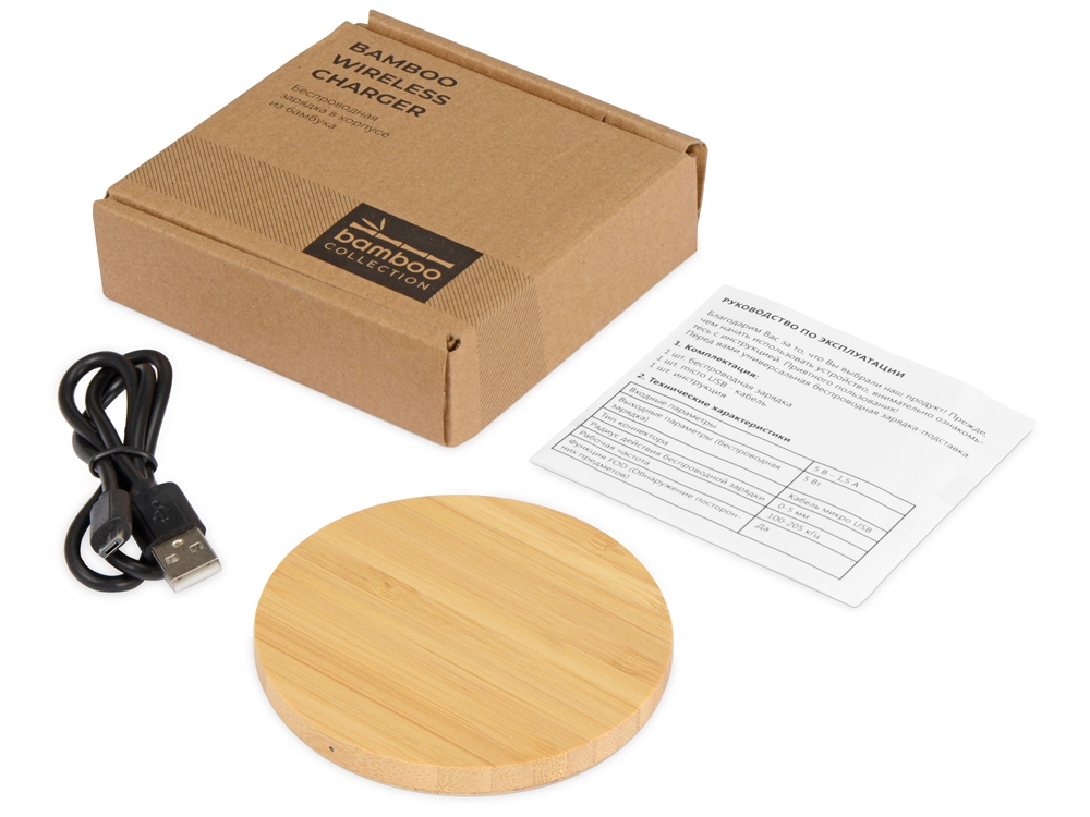 Беспроводное зарядное устройство из бамбука Cap, натуральный купить оптом и в розницу с нанесением логотипа в Нижнем Новгороде