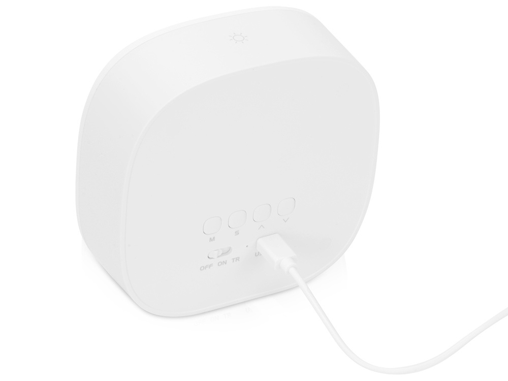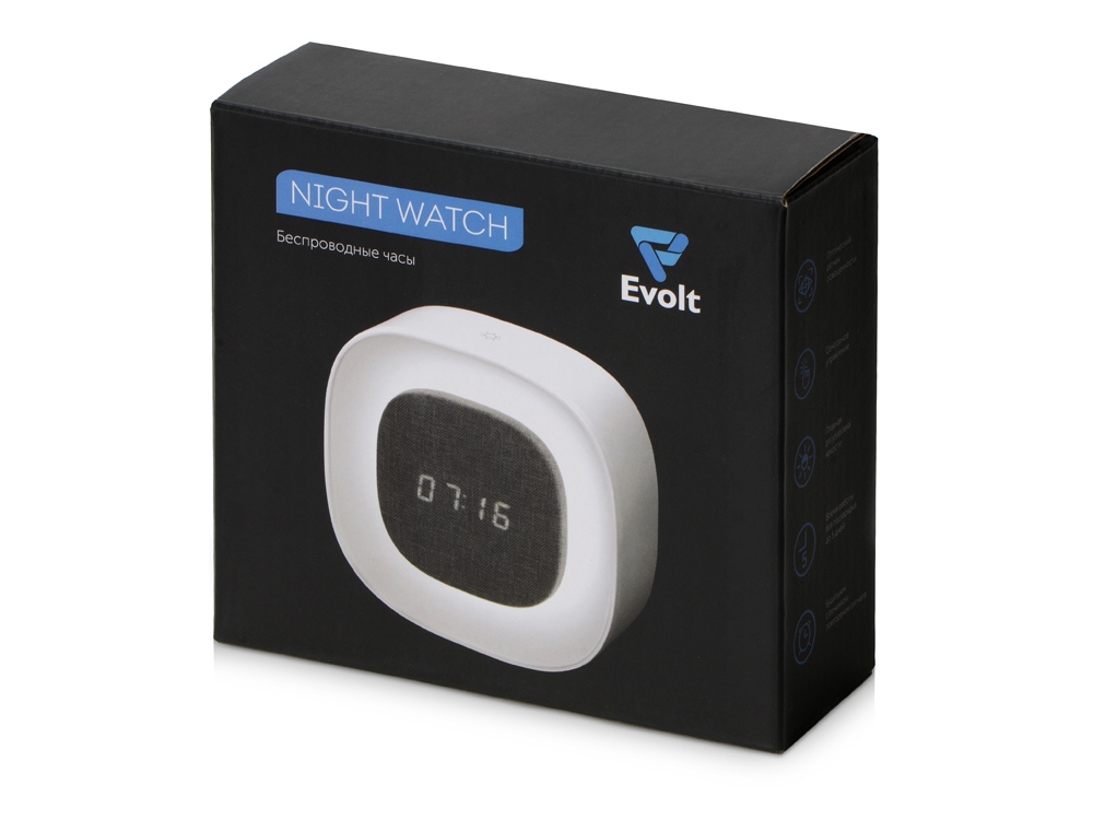Беспроводные часы с управляемой яркостью подсветки. Для включения подсветки просто прикоснитесь к сенсорной кнопке, расположенной на верхней части Night Watch — очень удобно, если это происходит в темноте: достаточно попасть ладонью по центру верхней грани. Длительным нажатием кнопки регулируется яркость подсветки. Цифровой дисплей подстраиваются под степень освещенности комнаты при помощи оптического датчика: ночью, при отсутствии света, дисплей часов светится неярко и не раздражает глаза после пробуждения, а также не мешает сну, при солнечном свете же цифры будут подсвечиваться ярко. Беспроводные часы имеют функцию будильника, режим энергосбережения, а также режим сна, который поможет с комфортным засыпанием: в нем дисплей постепенно гаснет в течение 30 минут. Встроенный аккумулятор на 1200 мАч. Среднее время работы при выключенной подсветке - 6 дней. Время работы при включенной подсветке - 6 часов. - удобная сенсорная кнопка - плавное изменение яркости - умный датчик освещенности - будильник - режим энергосбережения - режим сна (постепенное выключение подсветки) - беспроводные: можно взять в поход или в поездку