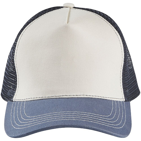 Бейсболка Blink, молочно-белая с синим (деним) купить оптом и в розницу с нанесением логотипа в Нижнем Новгороде