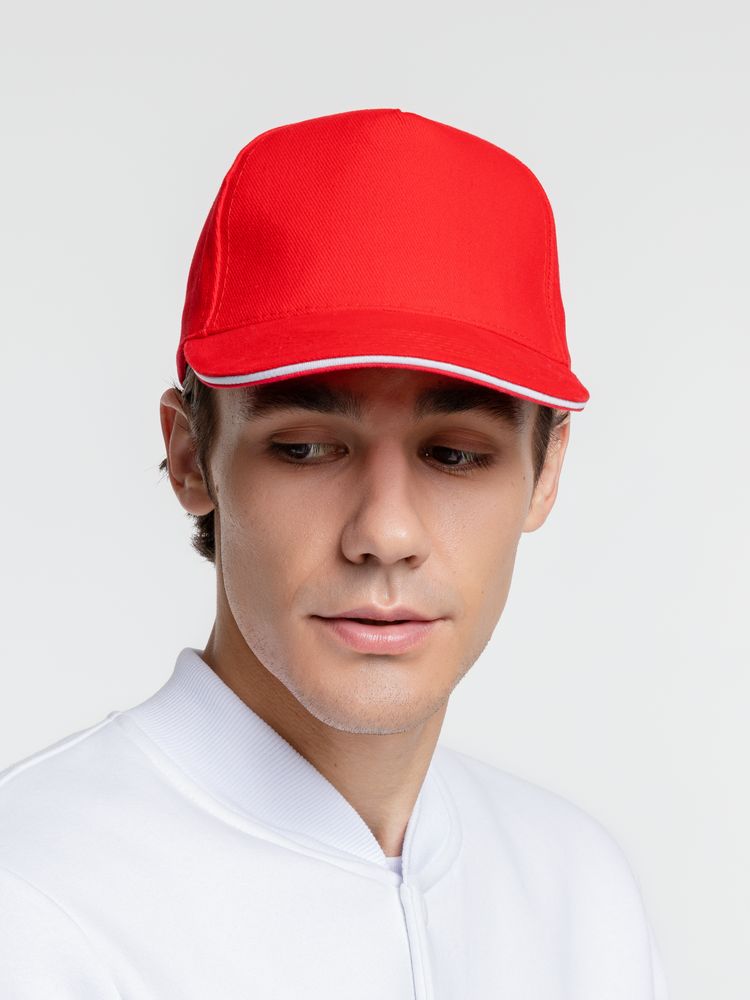 Бейсболка Classic 2.0, красная с белым кантом купить оптом и в розницу с нанесением логотипа в Нижнем Новгороде