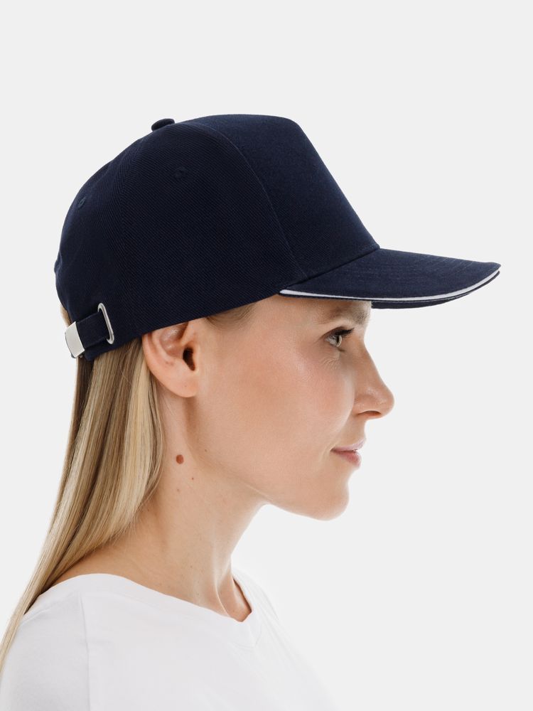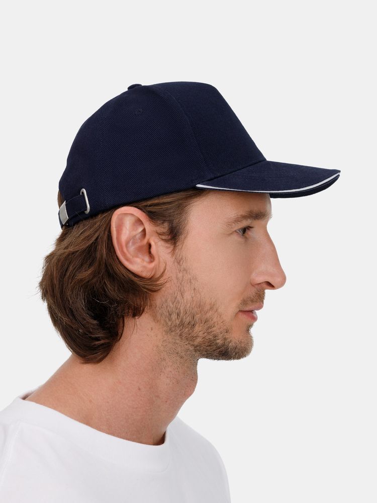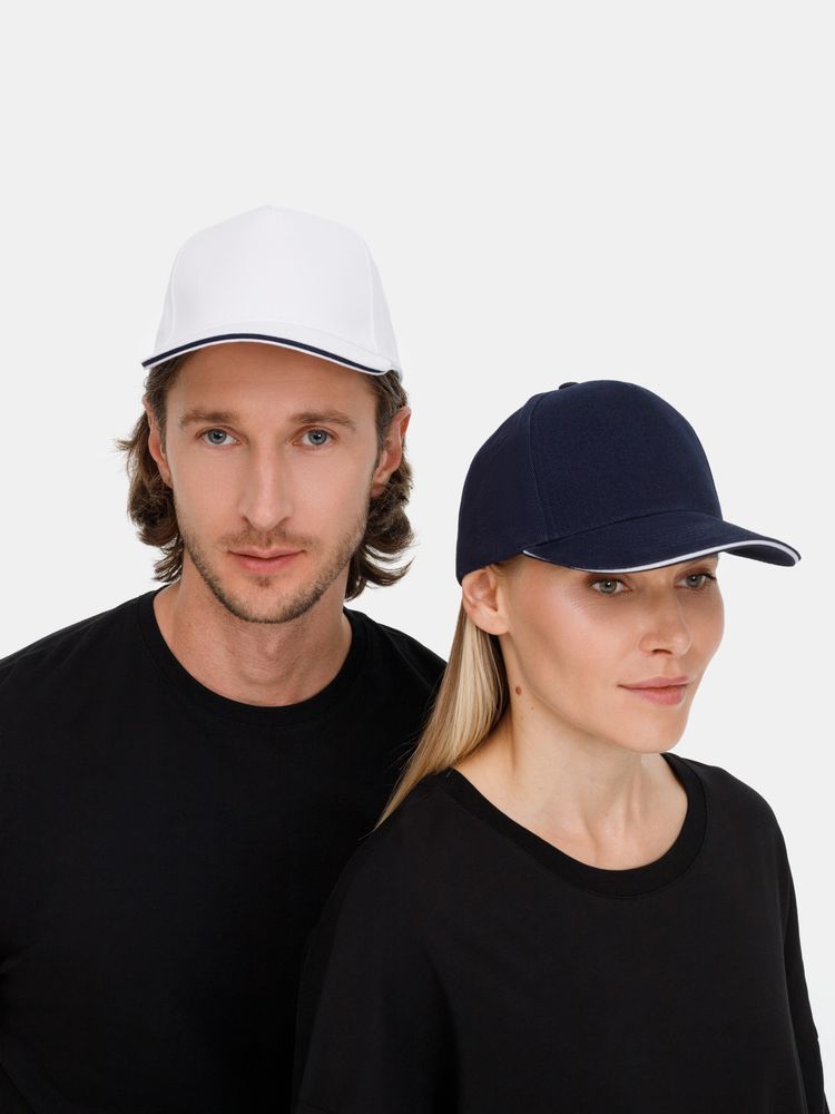 Бейсболка Classic 2.0, темно-синяя с белым кантом купить оптом и в розницу с нанесением логотипа в Нижнем Новгороде