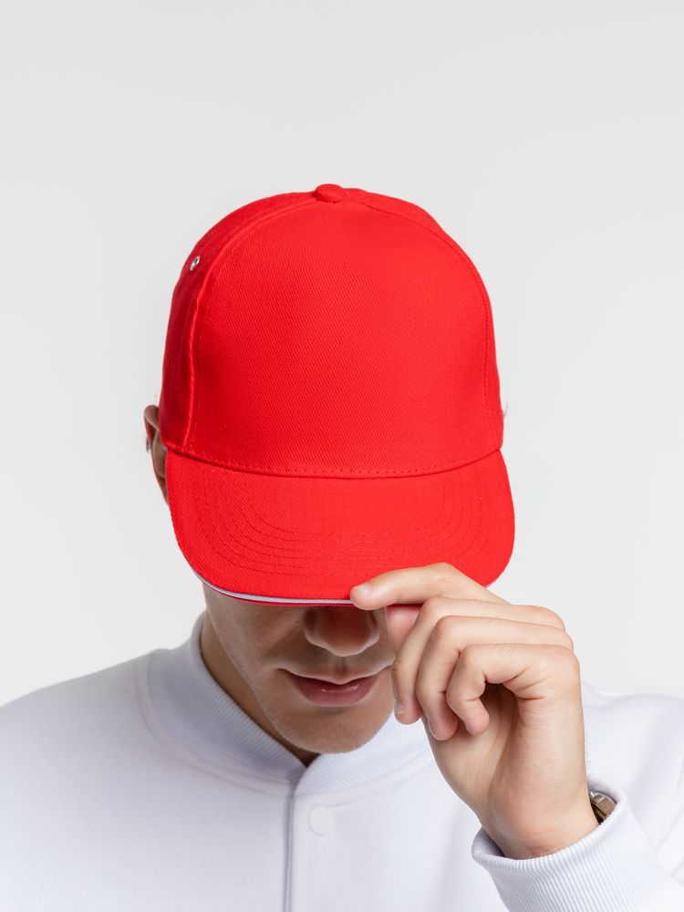 Бейсболка Classic, красная с белым кантом купить оптом и в розницу с нанесением логотипа в Нижнем Новгороде