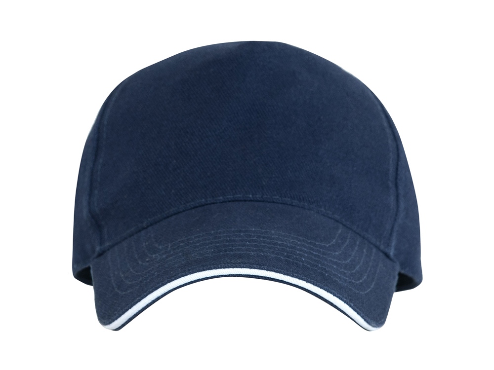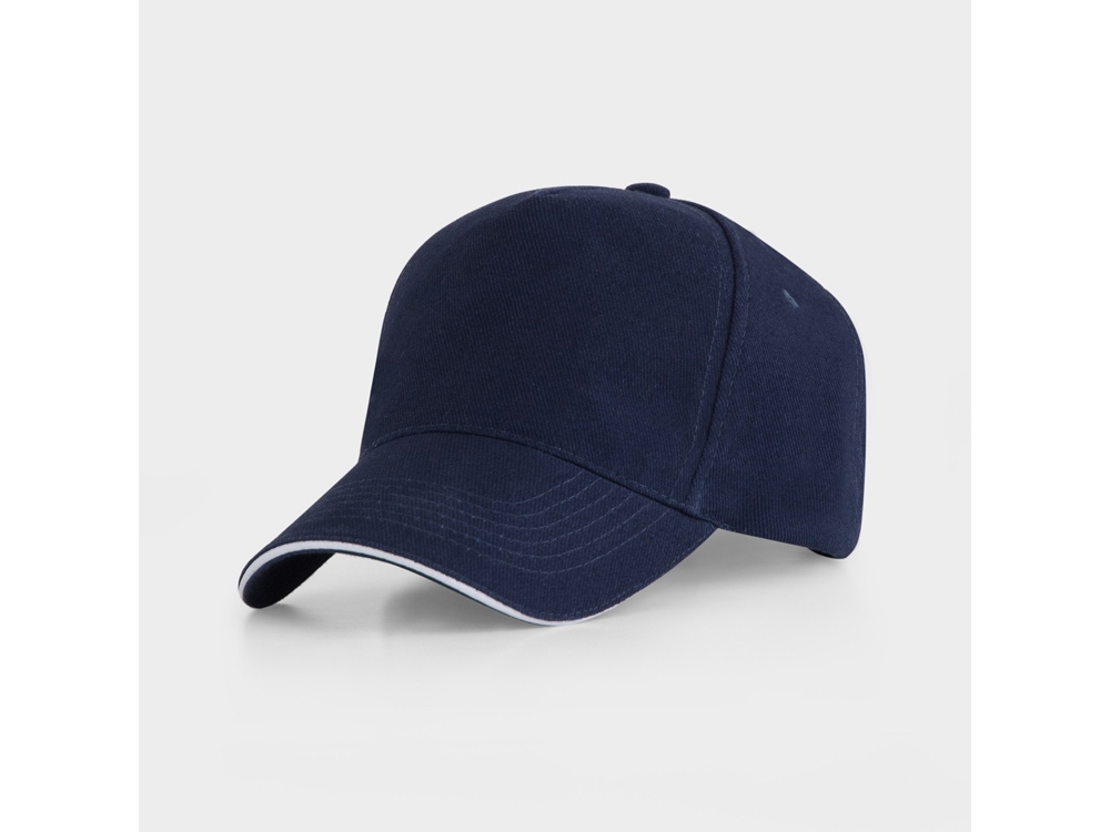 Бейсболка из 5 панелей с контрастным сэндвичем. Четыре вышитых вентиляционных люверса. Застежка на липучку.