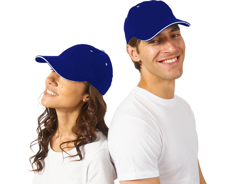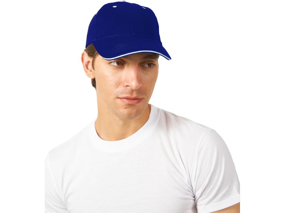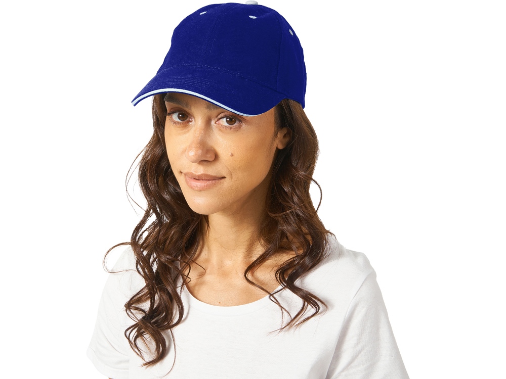 Стильная 6-панельная промо-бейсболка с контрастными деталями. Отличный выбор для яркого и запоминающегося брендинга. - Классическая бейсболка сшита из 6 панелей. - Яркие акценты – контрастная верхняя пуговичка, а также вышитые люверсы – стильная деталь, привлекающая внимание и усиливающая узнаваемость бренда. - Эффективная вентиляция: люверсы обеспечивают комфорт при носке - Премиальный вид козырька конструкции сэндвич с декоративным контрастным кантом по краю, не только эстетично, но и повышает жесткость и долговечность козырька. - Удобная посадка - регулируемая застежка на липучке (велкро) гарантирует идеальное прилегание на любую голову.