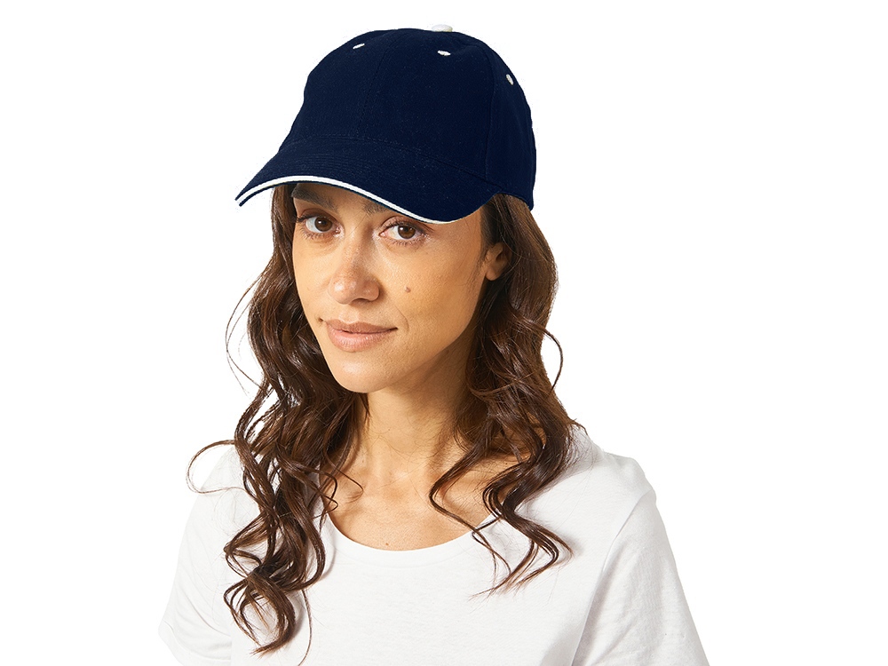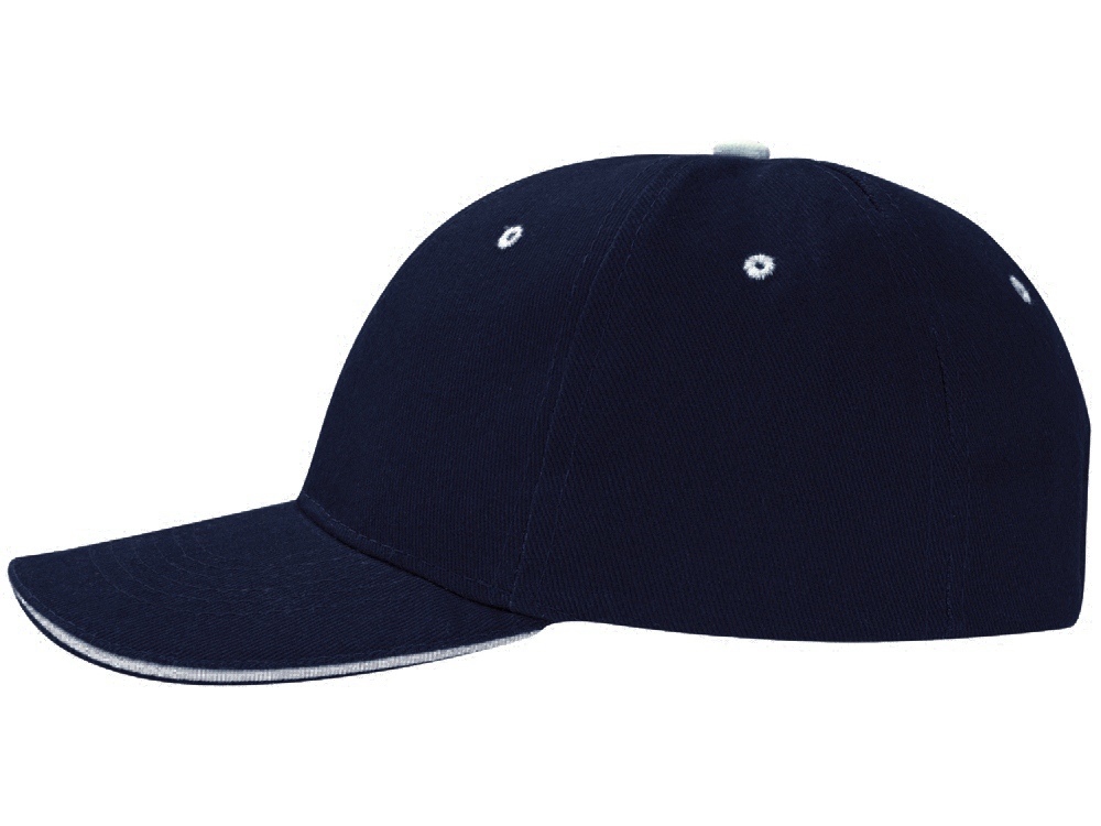 Стильная 6-панельная промо-бейсболка с контрастными деталями. Отличный выбор для яркого и запоминающегося брендинга. - Классическая бейсболка сшита из 6 панелей. - Яркие акценты – контрастная верхняя пуговичка, а также вышитые люверсы – стильная деталь, привлекающая внимание и усиливающая узнаваемость бренда. - Эффективная вентиляция: люверсы обеспечивают комфорт при носке - Премиальный вид козырька конструкции сэндвич с декоративным контрастным кантом по краю, не только эстетично, но и повышает жесткость и долговечность козырька. - Удобная посадка - регулируемая застежка на липучке (велкро) гарантирует идеальное прилегание на любую голову.
