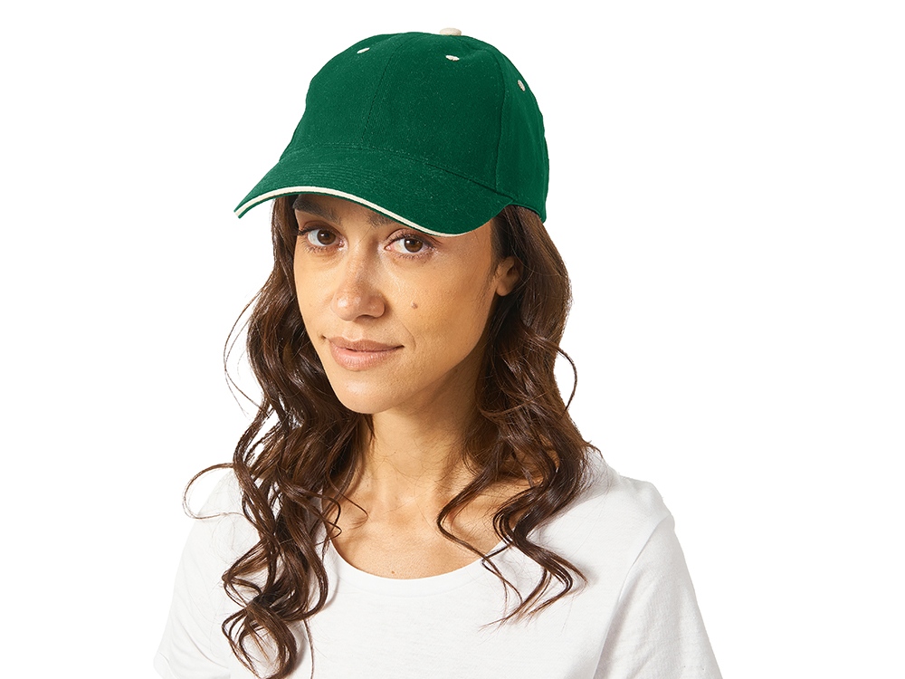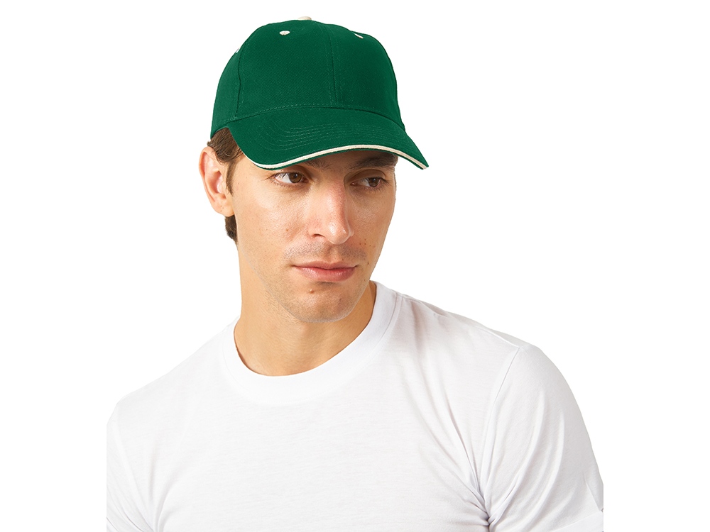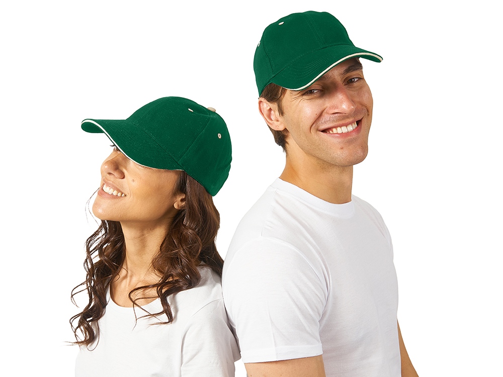 Стильная 6-панельная промо-бейсболка с контрастными деталями. Отличный выбор для яркого и запоминающегося брендинга. - Классическая бейсболка сшита из 6 панелей. - Яркие акценты – контрастная верхняя пуговичка, а также вышитые люверсы – стильная деталь, привлекающая внимание и усиливающая узнаваемость бренда. - Эффективная вентиляция: люверсы обеспечивают комфорт при носке - Премиальный вид козырька конструкции сэндвич с декоративным контрастным кантом по краю, не только эстетично, но и повышает жесткость и долговечность козырька. - Удобная посадка - регулируемая застежка на липучке (велкро) гарантирует идеальное прилегание на любую голову.
