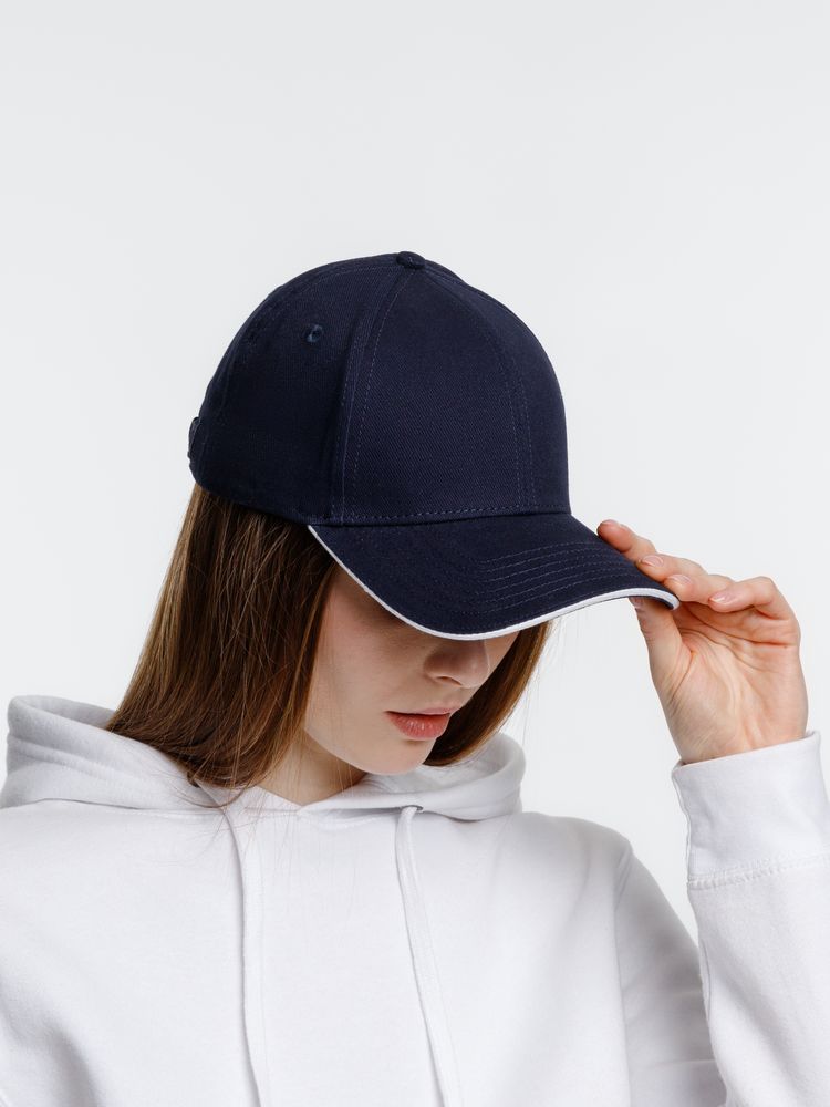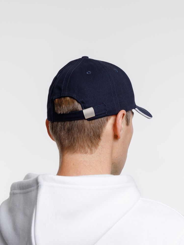 Бейсболка Spiker, темно-синяя с белым купить оптом и в розницу с нанесением логотипа в Нижнем Новгороде