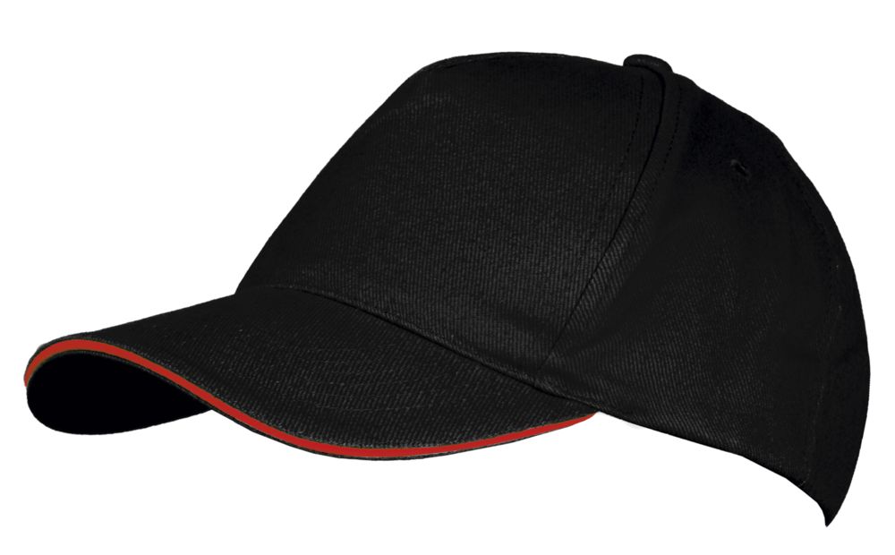 Бейсболка Long Beach, черная с красным купить оптом и в розницу с нанесением логотипа в Нижнем Новгороде