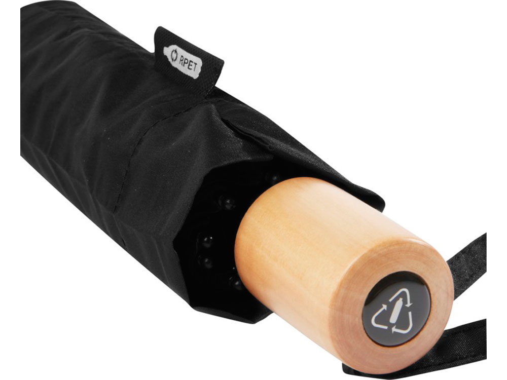 Ручной складной зонт с куполом из эпонж полиэстера и переработанного ПЭТ-пластика. Прочный металлический стержень, высококачественная рама со спицами из стекловолокна обеспечивают максимальную гибкость в ветреную погоду. Поставляется с чехлом и может легко поместиться в сумку или рюкзак для удобного ношения. Сочетание деревянной ручки и купола из эпонж полиэстера и переработанного ПЭТ-пластика обеспечивает надежность зонта. Доступен в различных модных цветах.