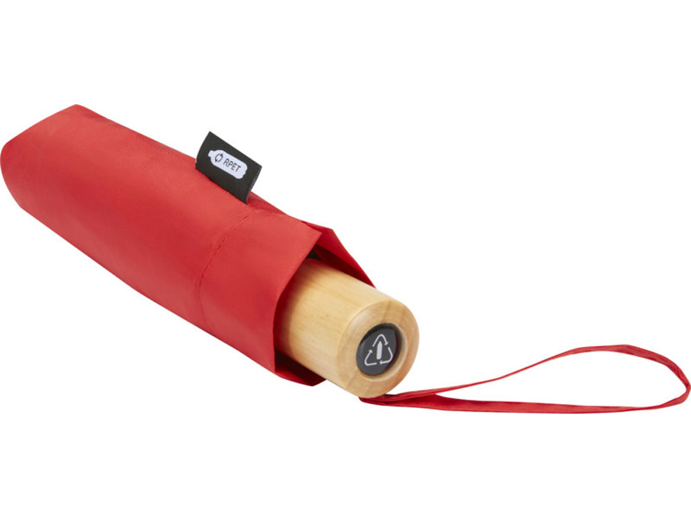 Ручной складываемый зонт с куполом из эпонж полиэстера и переработанного ПЭТ-пластика. Прочный металлический стержень, высококачественная рама со спицами из стекловолокна обеспечивают максимальную гибкость в ветреную погоду. Поставляется с чехлом и может легко поместиться в сумку или рюкзак для удобного ношения. Сочетание деревянной ручки и купола из эпонж полиэстера и переработанного ПЭТ-пластика обеспечивает надежность зонта. Доступен в различных модных цветах с большой областью рисунка на каждой панели.
