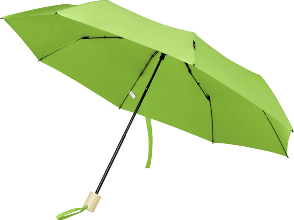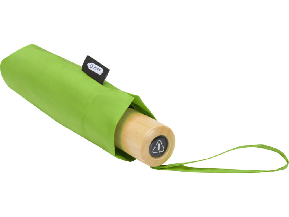 Ручной складываемый зонт с куполом из эпонж полиэстера и переработанного ПЭТ-пластика. Прочный металлический стержень, высококачественная рама со спицами из стекловолокна обеспечивают максимальную гибкость в ветреную погоду. Поставляется с чехлом и может легко поместиться в сумку или рюкзак для удобного ношения. Сочетание деревянной ручки и купола из эпонж полиэстера и переработанного ПЭТ-пластика обеспечивает надежность зонта. Доступен в различных модных цветах с большой областью рисунка на каждой панели.