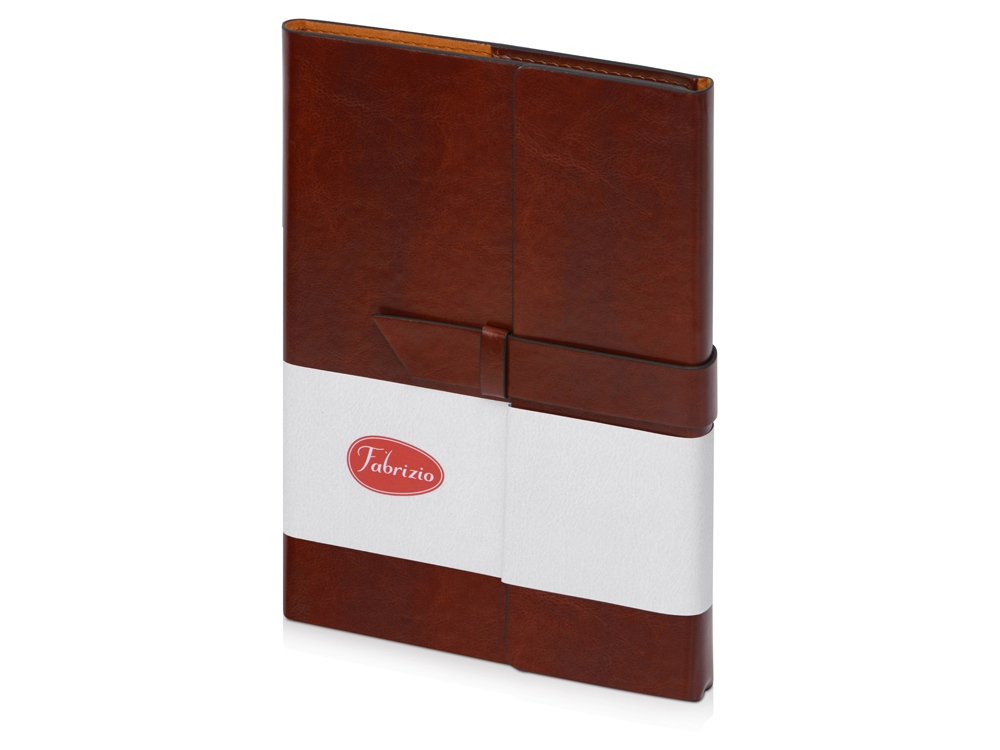Бизнес-блокнот формата А5 в твердой обложке из искусственной кожи станет отличным подарком для любого клиента. Блокнот состоит из обложки с клапаном и сменного блока с линованными страницами. Внутри обложки есть петля для ручки в тон (ручка в комплект не входит).