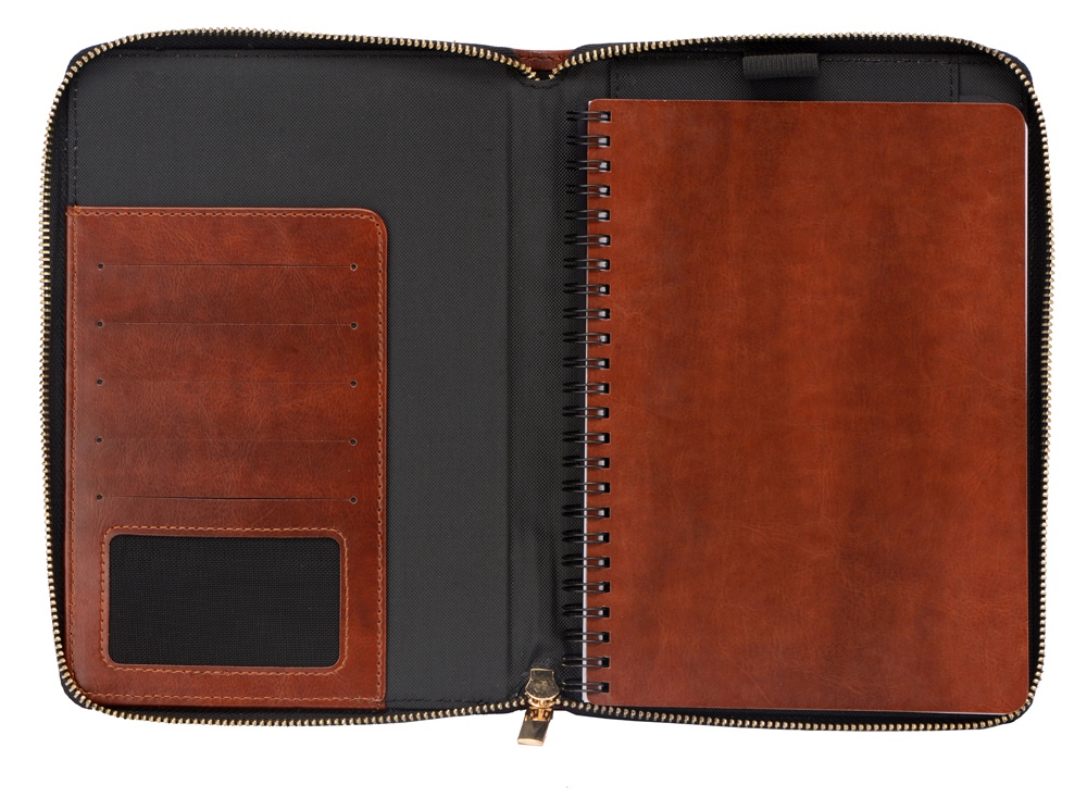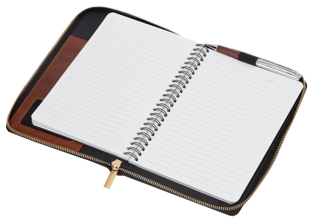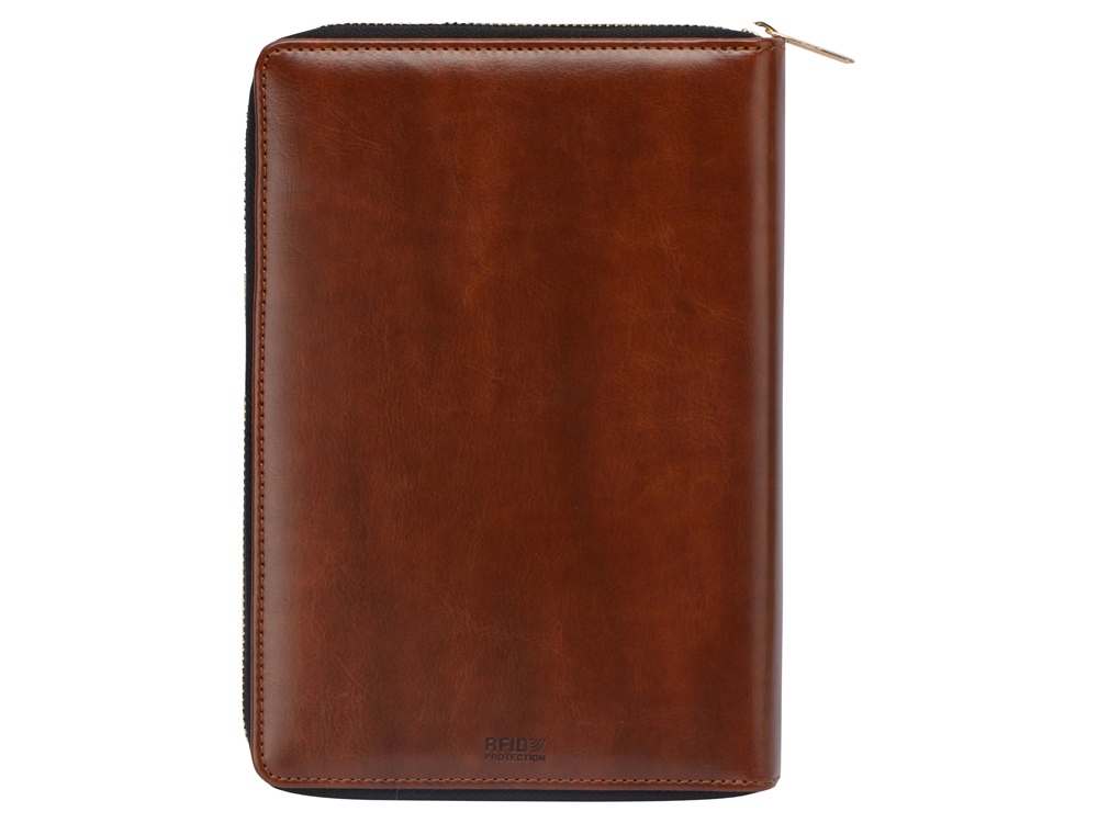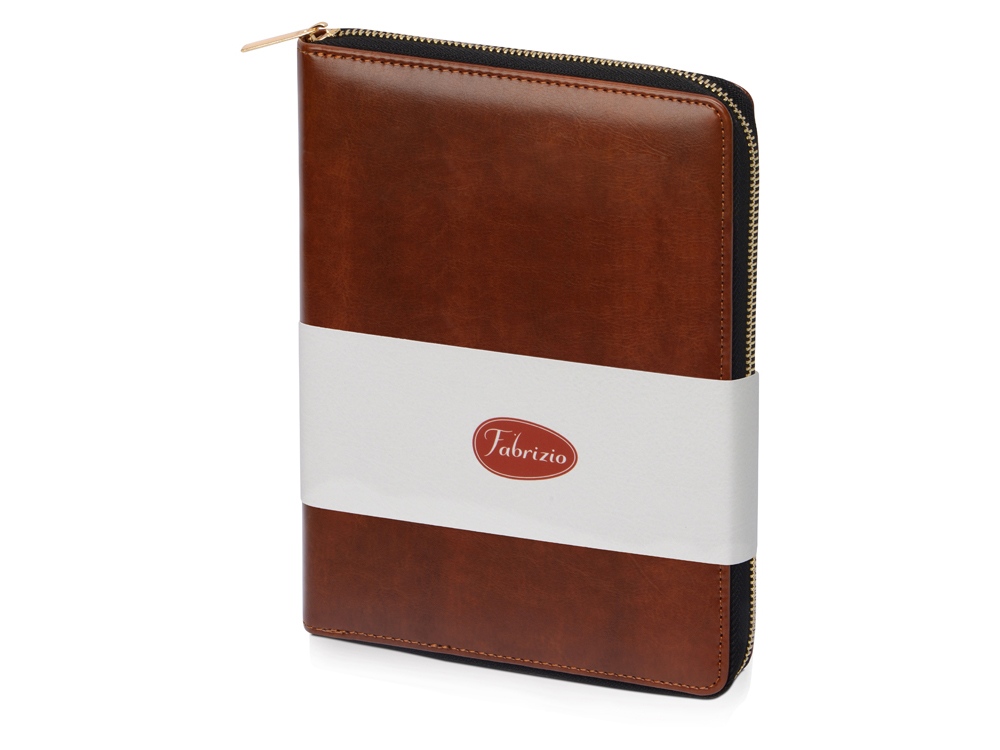 Бизнес блокнот Fabrizio состоит из пенала на молнии выполненного из искусственной кожи, и сменной тетради на 80 листов на кольцах с перфорированными линованными листами белого цвета. Блокнот снабжен 5 отделениями для карт и RFID защитой, которая охраняет вашу личную и финансовую информацию от мошенников. Внутри блокнота есть петля для ручки в тон (ручка в комплект не входит).