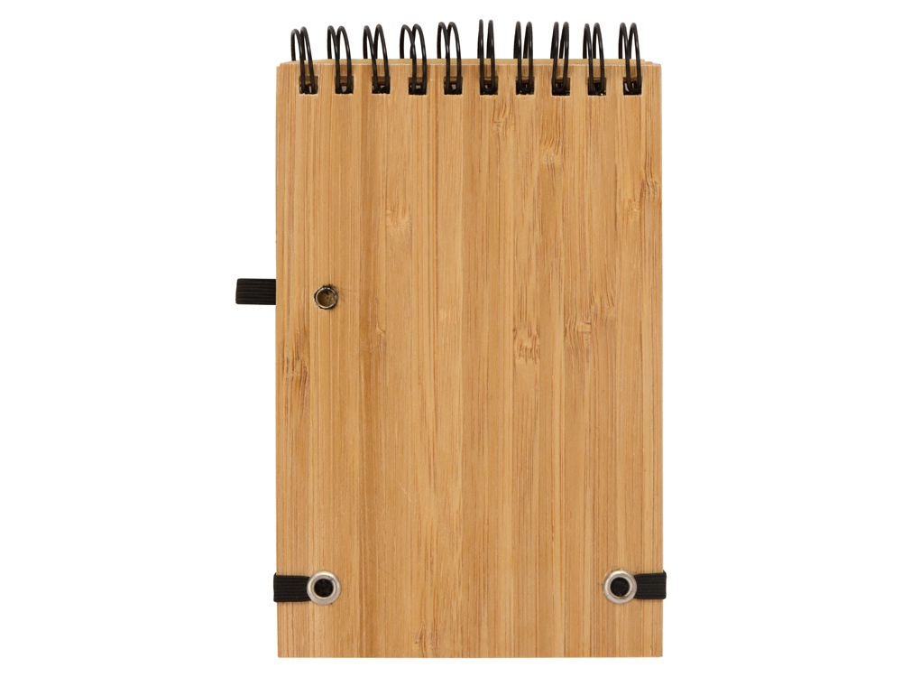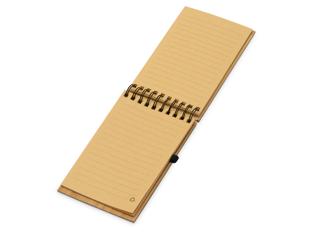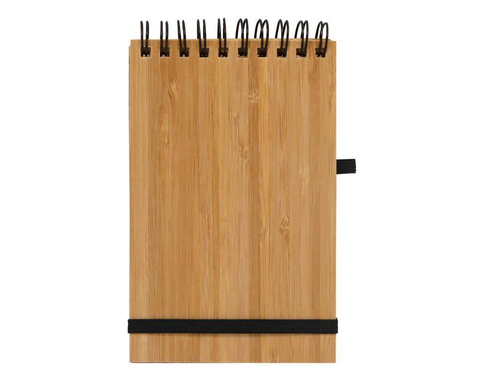 Оригинальный блокнот с обложкой из бамбука и картона, а также блоком из переработанной бумаги. Петля для ручки и горизонтальная резинка расширяют функциональность.
