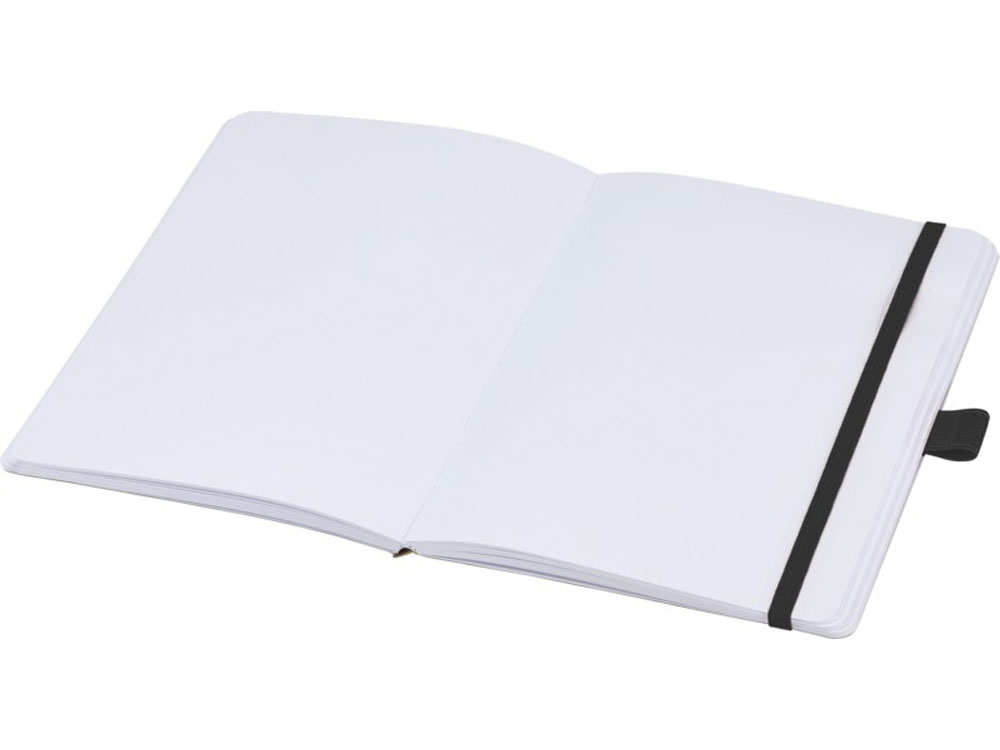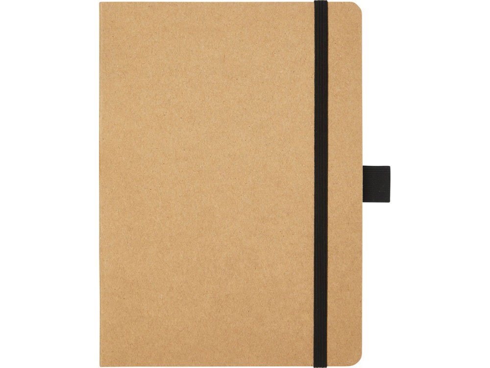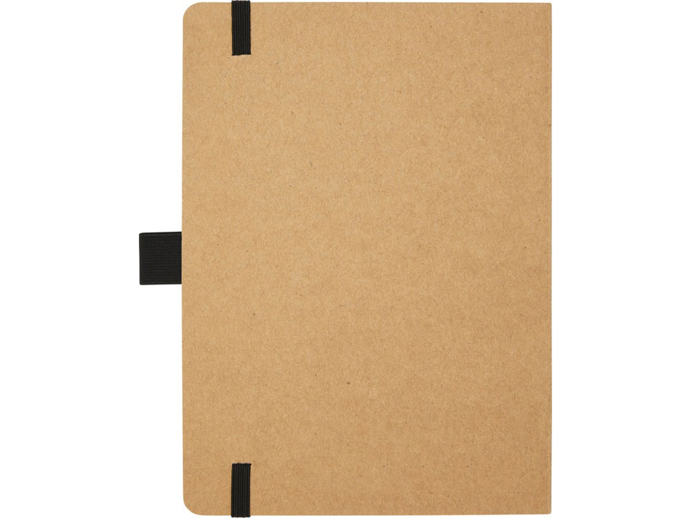 Блокнот формата из линованной переработанной бумаги (70 г/м²) с закругленными углами, цветной резинкой и петлей для ручки, соответствующей 107384 цветам ручки.