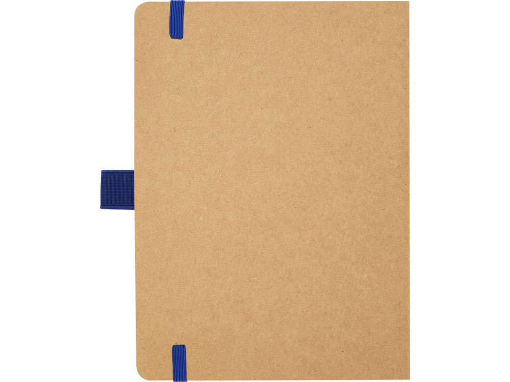 Блокнот формата из линованной переработанной бумаги (70 г/м²) с закругленными углами, цветной резинкой и петлей для ручки, соответствующей 107384 цветам ручки.