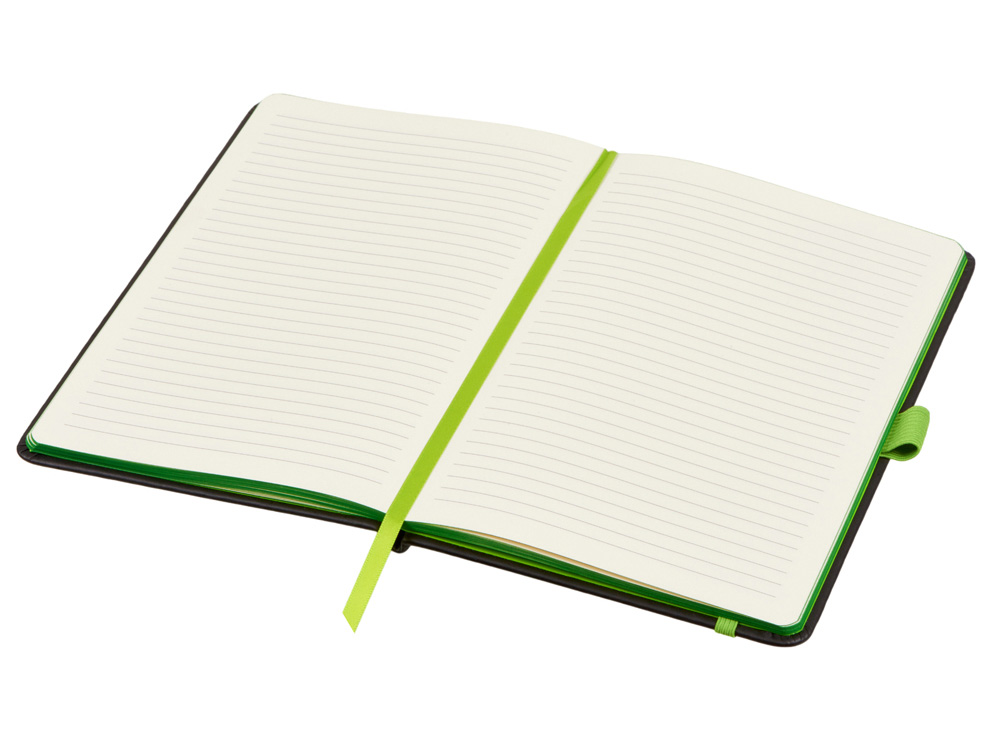 Блокнот в твердой обложке с закругленными углами черного цвета. Ляссе, резинка и срез яркого контрастного цвета делают его очень стильным и функциональным бизнес-аксессуаром. Внутри 80 листов кремового блока плотностью 70 г/м2. Блокнот отлично подойдет для нанесения вашего логотипа.