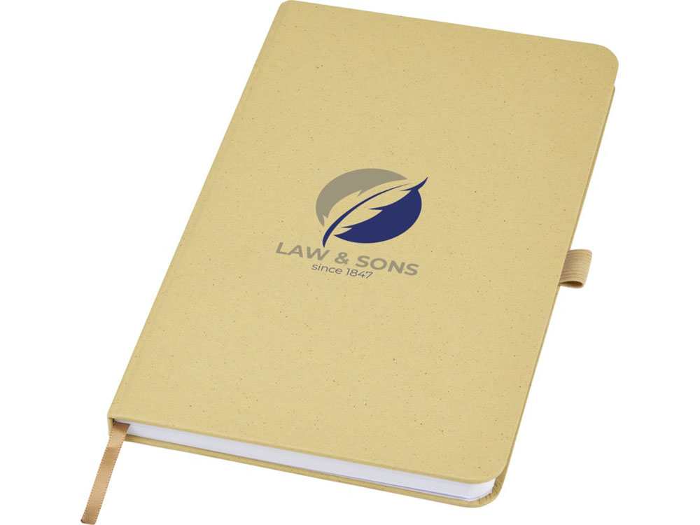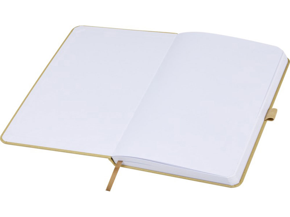 Легкий блокнот в твердой обложке для повседневных заметок с обложкой из материалов из ответственных источников. Коричневая обложка содержит остатки кофе, зеленая — остатки оливок, а белая — кукурузы. Имеет 80 листов (70 г/м²) из переработанной белой линованной бумаги.