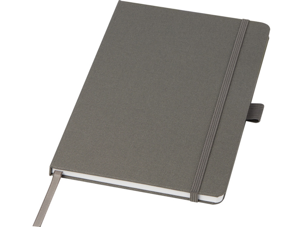 Блокнот формата А5 с обложкой из переработанного ПЭТ. Содержит 80 листов в линию плотностью 70 г/м², изготовленных из переработанной бумаги, с петлей для ручки и лентой-закладкой. Может быть дополнен шариковой ручкой Honua 107757 из переработанного ПЭТ. Переработанный PET пластик. FSC Recycled 100% P7 CU-COC-877277.