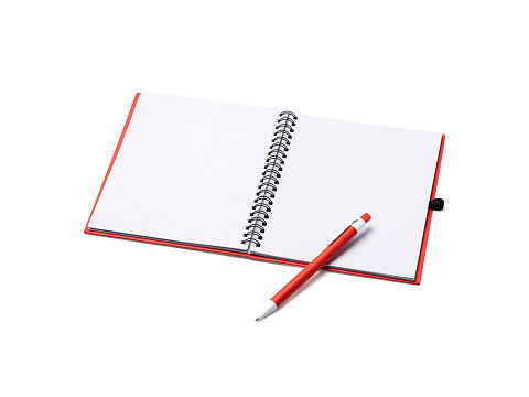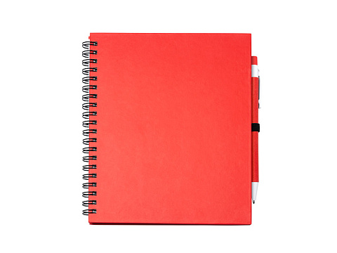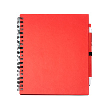 Блокнот на спирали с простыми листами и держателем для ручек. Твердая обложка и ручка из переработанного картона. 70 листов.