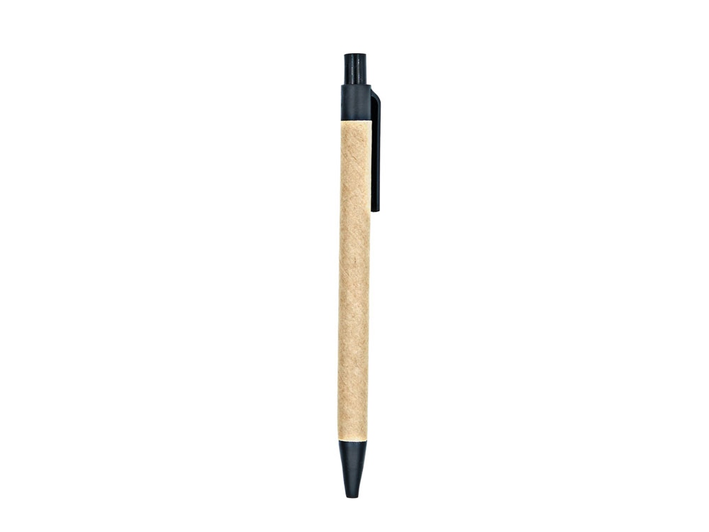 Блокнот на спирали с жесткой обложкой из переработанного картона. Включает шариковую ручку с синими чернилами. 70 листов.