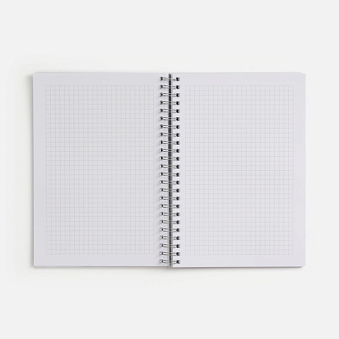 Блокнот в клетку на металлической пружине с двойной обложкой. Верхняя вставка из полупрозрачного матового пластика добавляет жесткости, расширяет возможности нанесения, а также придает обычному блокноту на пружине более современный вид.
