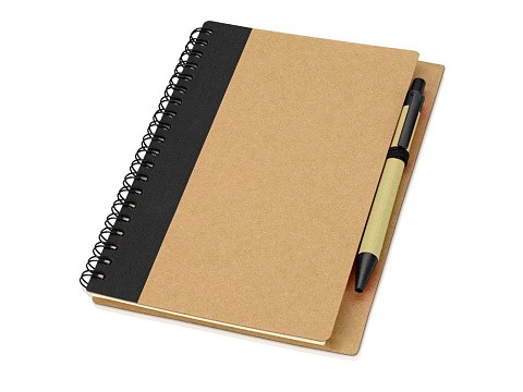 Блокнот Priestly с ручкой. Блокнот формата с 60 листами линованной бумаги вторичной переработки и ручкой под цвет блокнота. На обложку блокнота и ручку можно нанести яркий логотип.
