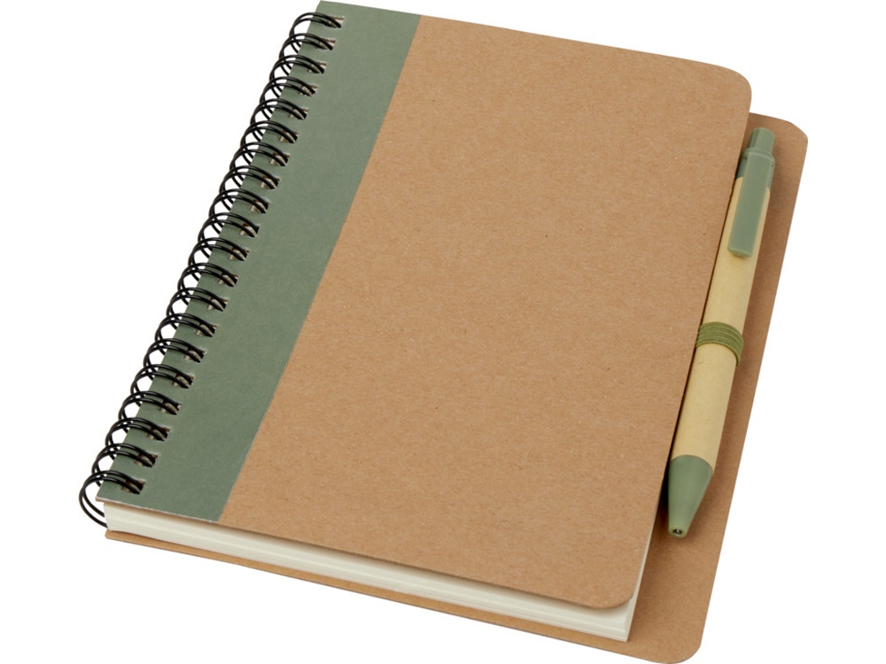 Записная книжка с обложкой из переработанной бумаги. 60 линованных листов, переработанная бумага формата А6, ручка в комплекте. Переработанная бумага.
