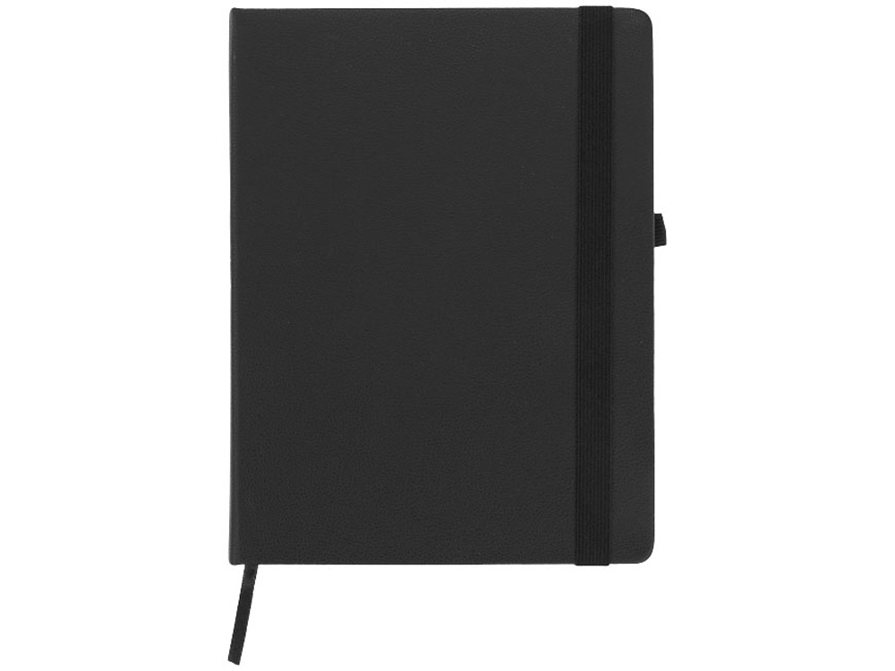 Блокнот Rivista большого размера. Блокнот Rivista отличается стильным современным дизайном с высококачественной обложкой, идеально подходящей для нанесения логотипа и информации вашей компании. Предлагаются современные цвета. Также предусмотрена эластичная застежка, держатель для ручки, лента-закладка и кармашек изнутри на задней стороне обложки. Содержит 128 листов линованной бумаги (70 г/м²) кремового цвета. ПУ.