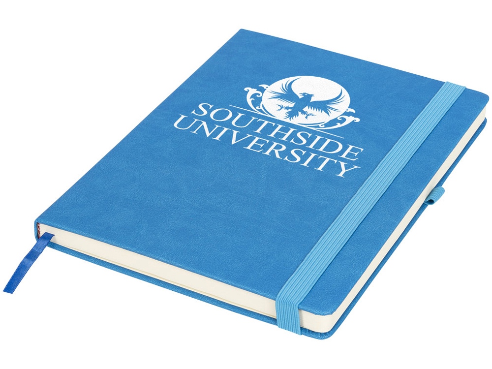 Блокнот Rivista большого размера. Блокнот Rivista отличается стильным современным дизайном с высококачественной обложкой, идеально подходящей для нанесения логотипа и информации вашей компании. Предлагаются современные цвета. Также предусмотрена эластичная застежка, держатель для ручки, лента-закладка и кармашек изнутри на задней стороне обложки. Содержит 128 листов линованной бумаги (70 г/м²) кремового цвета. ПУ.