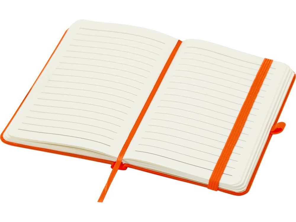 Блокнот Spectrum Plus формата А6 в твердой обложке с закругленными углами — это не только необходимая вещь в офисе, но и прекрасная возможность для продвижения вашего бренда. Картонный блокнот имеет мягкую на ощупь обложку и 80 линованных листов кремового цвета плотностью 70 г/м², идеально подходит для записи быстрых идей или длинных заметок. Блокнот оснащен петлей для ручки, эластичной застежкой, ленточкой-закладкой и карманом-гармошкой.