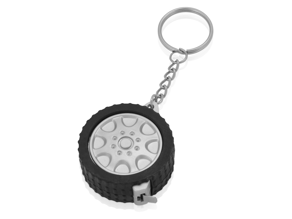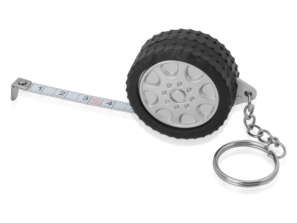 Брелок-рулетка Шина, 1 м., черный/серебристый купить оптом и в розницу с нанесением логотипа в Нижнем Новгороде