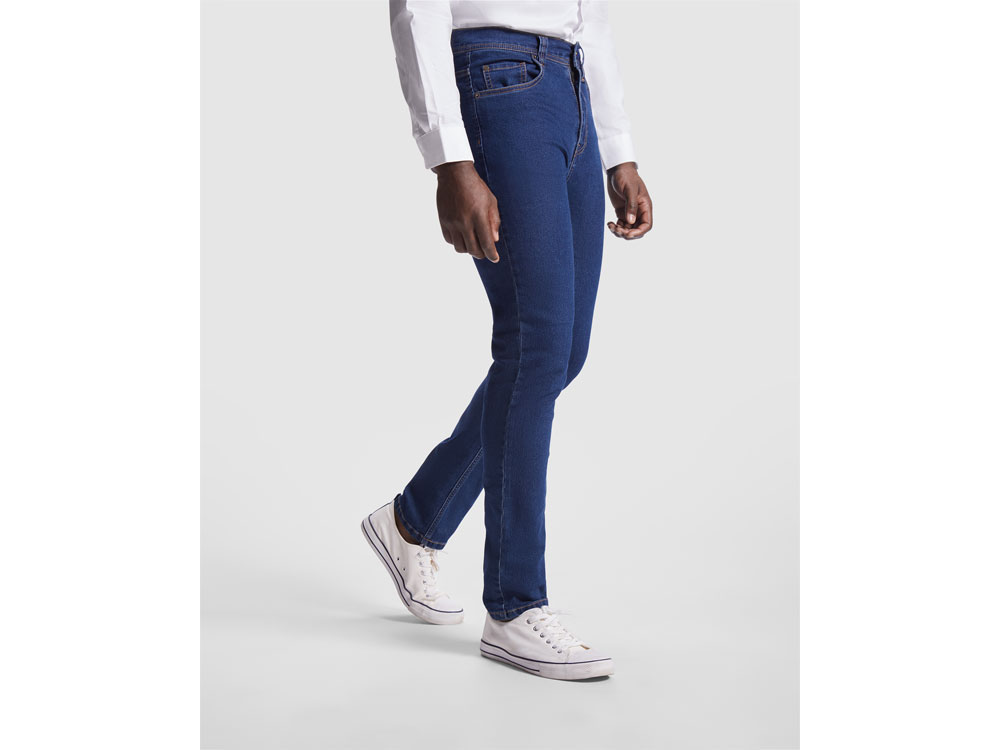 Джинсы мужские. · Классический крой и средняя посадка. · Пояс с 5 шлевками. · Застежка на металлическую молнию. · Два передних кармана и карман для монет. · Два задних кармана. · Полуприлегающий силуэт из ткани с эластаном.
