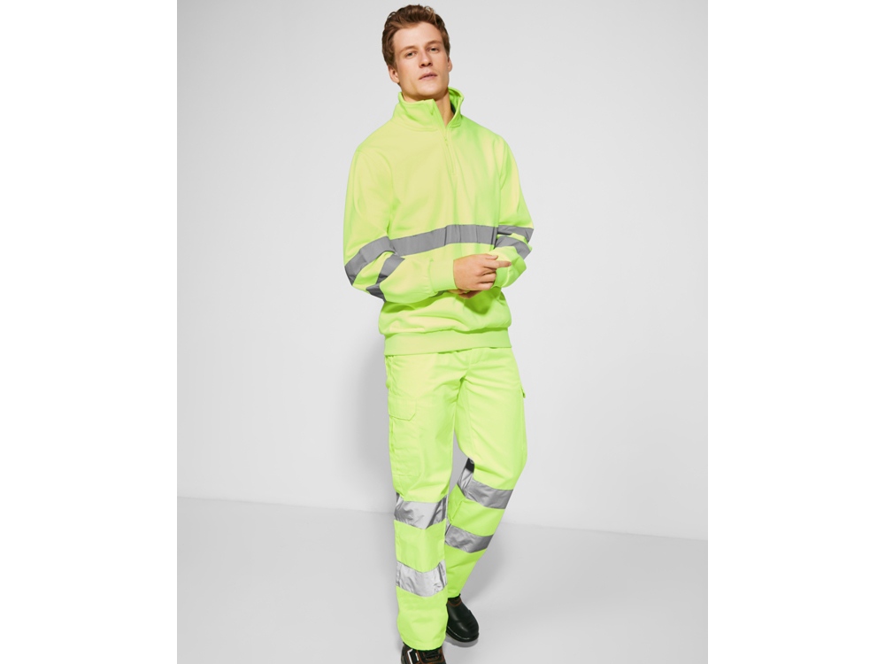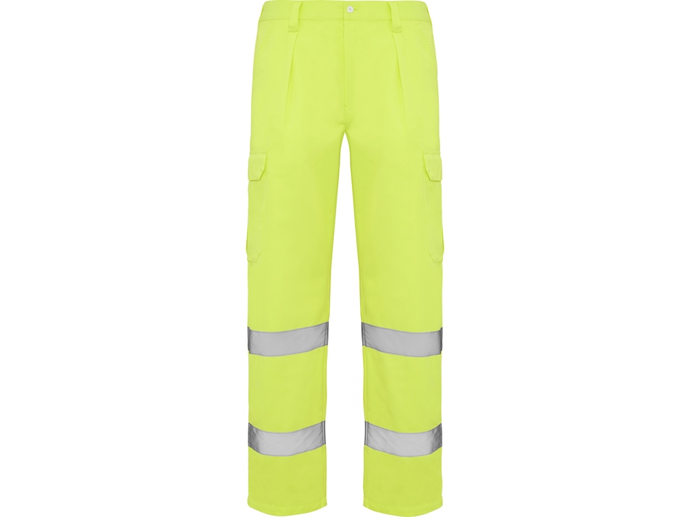 Брюки неоново-желтого цвета. · Регулируемый эластичный пояс сзади. · Два кармана спереди. · Функциональный карман сзади с клапаном на липучке. · Два боковых объемных карманы с клапаном на липучке. · Две горизонтальные светоотражающие полосы.