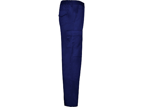 Брюки из прочной ткани. 1. Регулируемый эластичный пояс сзади. 2. Два кармана спереди. 3. Функциональные карманы сзади с клапаном на липучке. 4. Два функциональных боковых кармана карго с клапаном на липучке. 5. Дополнительное усиление сзади для защиты от протирания при сидении. 6. Двойная ткань на коленях.