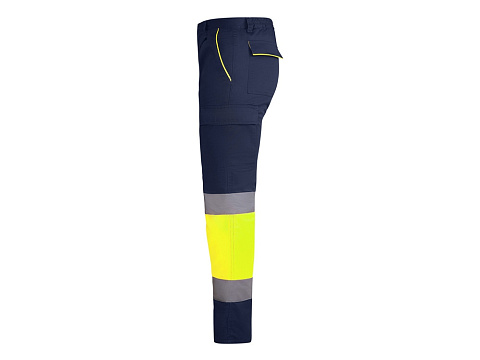 Светоотражающие удлиненные брюки на подкладке с несколькими карманами. Двухцветная комбинация со светоотражающими полосами. Контрастные неоновые детали на карманах. Подкладка из флиса. Эластичный пояс сзади. Два передних кармана. Два задних кармана с клапаном и застежкой на липучке. Два плиссированных боковых кармана с клапаном и застежкой на липучке.
