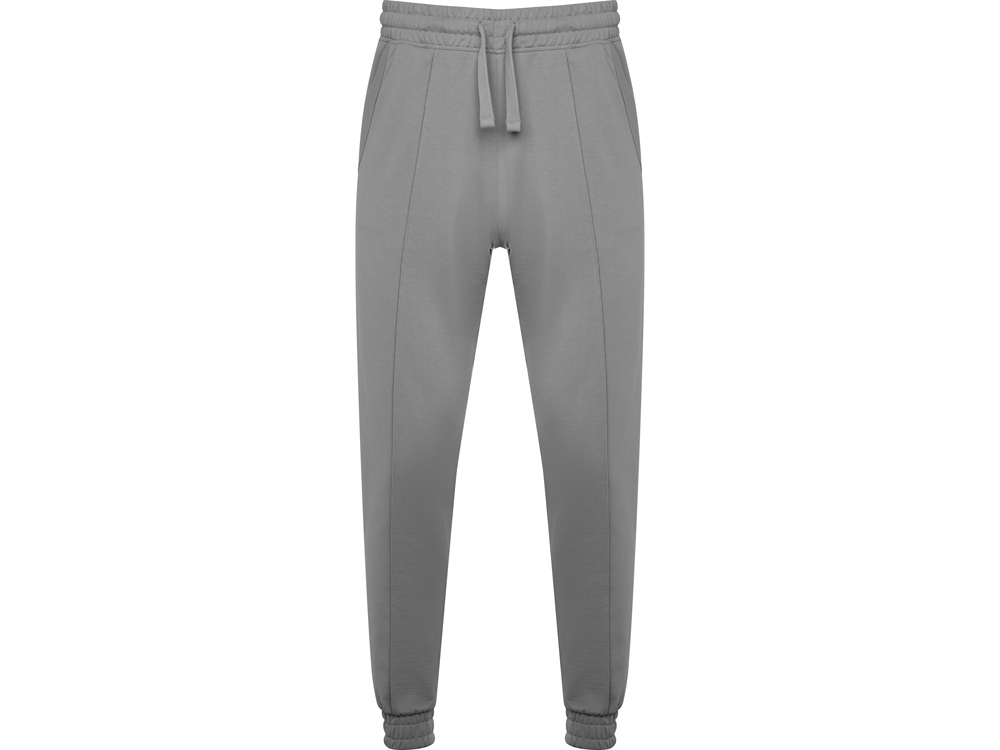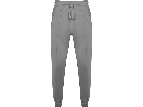 Прямые удлиненные брюки с манжетами на штанинах. Регулируемый эластичный пояс со шнуровкой. Два боковых кармана.