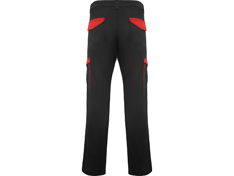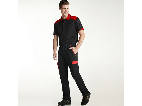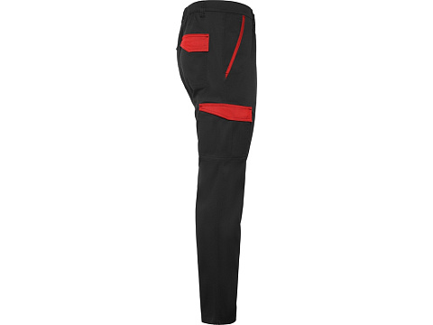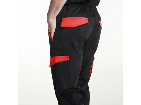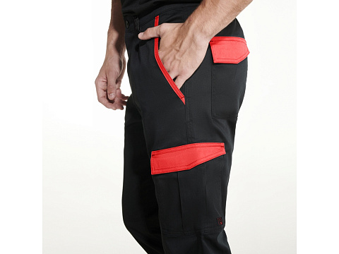 Брюки в двухцветной комбинации. · Удобная и регулируемая ткань. · Эластичный пояс сзади. · Контрастные петли для ремня, клапаны, плиссировка и кромка. · Два передних кармана. · Два задних кармана с клапаном и застежкой-липучкой. · Два боковых кармана со складкой и клапаном застегиваются на липучку.