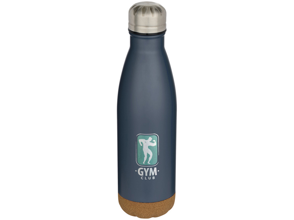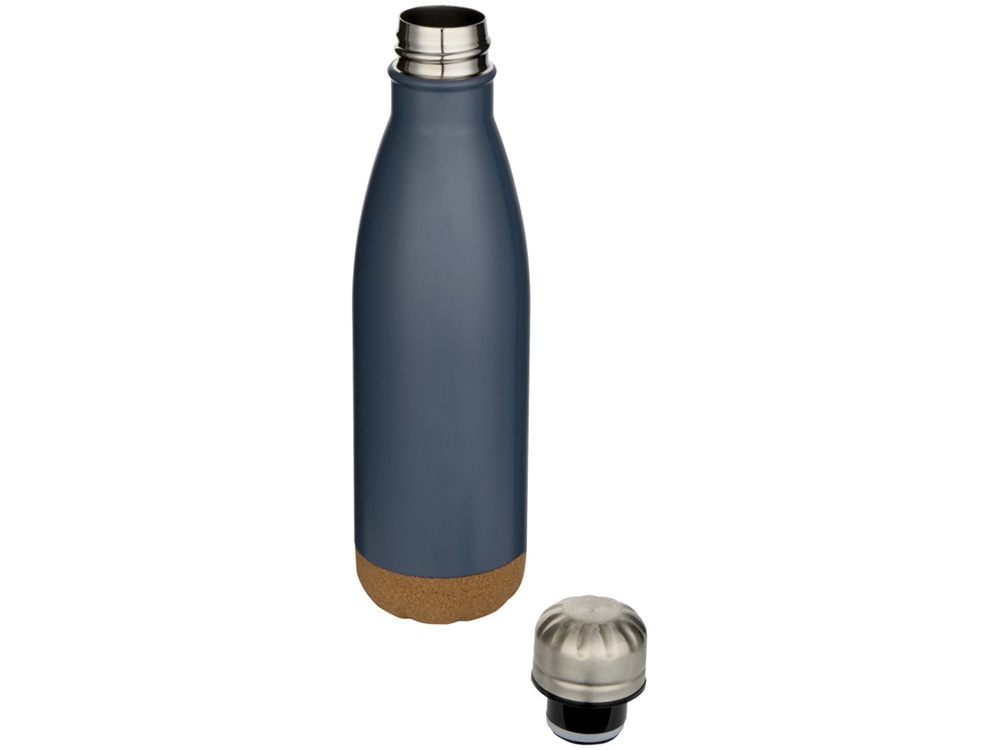 Бутылка для воды из нержавеющей стали с вакуумной изоляцией и пробковыми деталями в нижней части. Двойная изоляция стенок сохраняет напитки горячими или холодными в течение нескольких часов. Поставляется в подарочной коробке из переработанного картона. Объем: 500 мл. 90% нержавеющая сталь, 10% Пробка. упаковка FSC Mix Credit P5.1 CU-COC-877277.