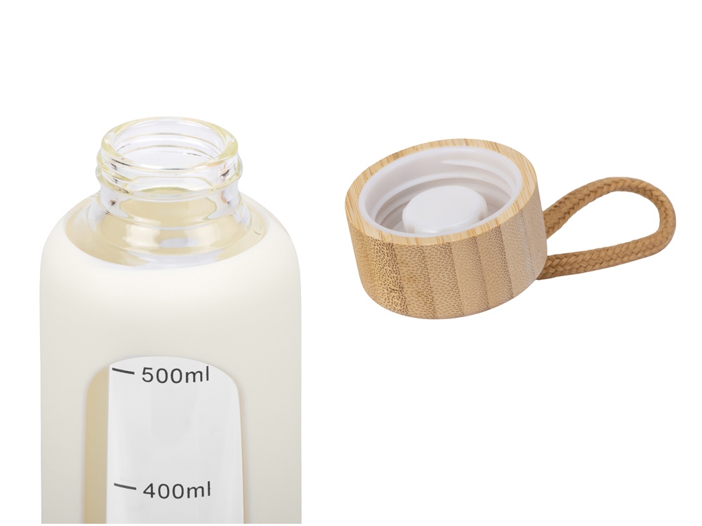 Элегантная и практичная бутылка объемом 550 мл из качественного боросиликатного стекла для ежедневного использования. - Полезные особенности: петелька для переноски, мерная шкала, мягкий нескользящий чехол - Безопасные и перерабатываемые материалы: стекло сохраняет натуральный вкус напитка, силикон гипоаллергенен - Индивидуальный стиль: завершите образ фирменным лого