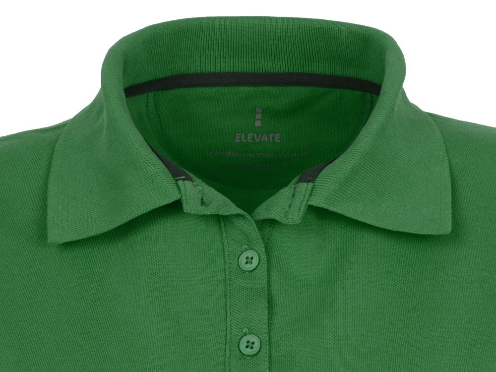 Женская рубашка поло с короткими рукавами Calgary. Стандартный покрой. Опущенный плечевой шов, цепная строчка. Мужская и детская модели на двух пуговицах. Женская модель с планкой на три пуговицы. Боковые разрезы с атласной лентой внутри. Детали со швами Pick-Stitch. Принт лого сзади в тон изделия. Атласная лента внутри горловины. Полумесяц. Резинка 1х1 на воротнике и манжетах. Трикотажное пике, 100% хлопок. 200 г/м².