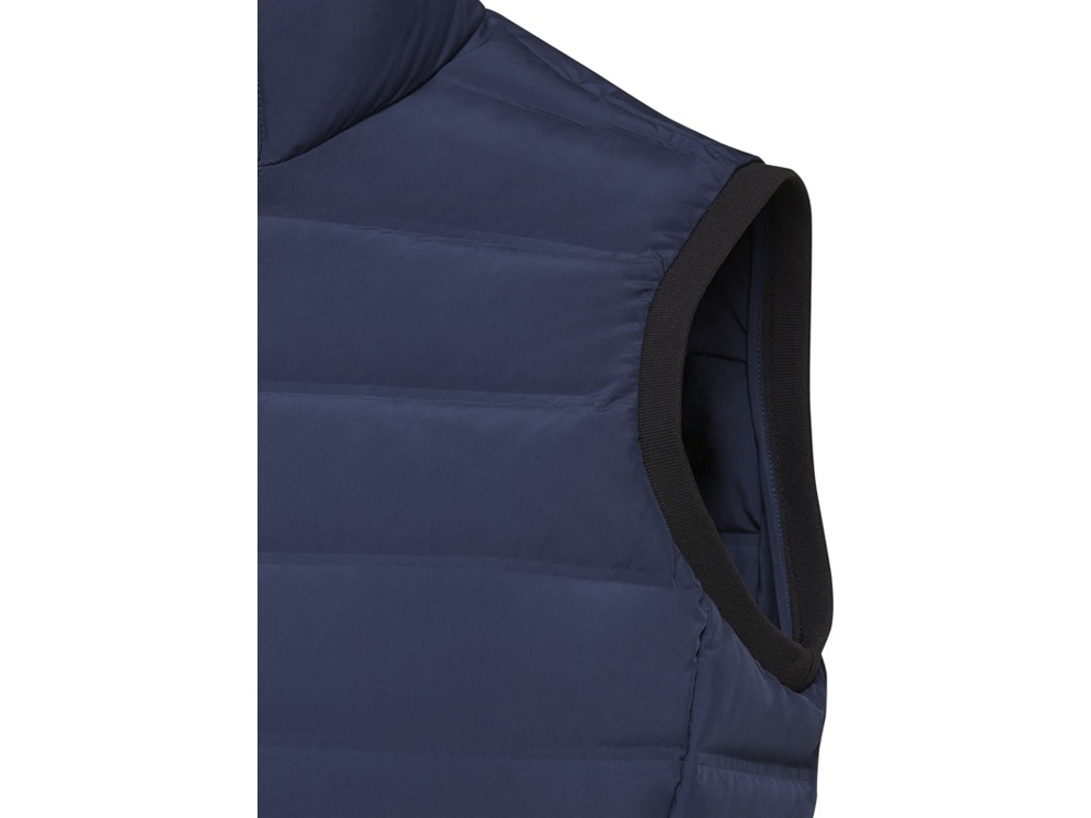 Стежка с утеплителем. Утеплитель из переработанного пуха, сертифицированного согласно GRS и RDS. Внутренний штормовой клапан с защитой подбородка. Эластичные манжеты и нижний край из гладкого трикотажа. Передние карманы с застежкой-молнией. Бегунки застежки-молнии с простой фиксацией. Фирменная резиновая петля для вешалки. Главный лейбл нанесен методом термоприклеивания, удобным для размещения рисунков на ткани.