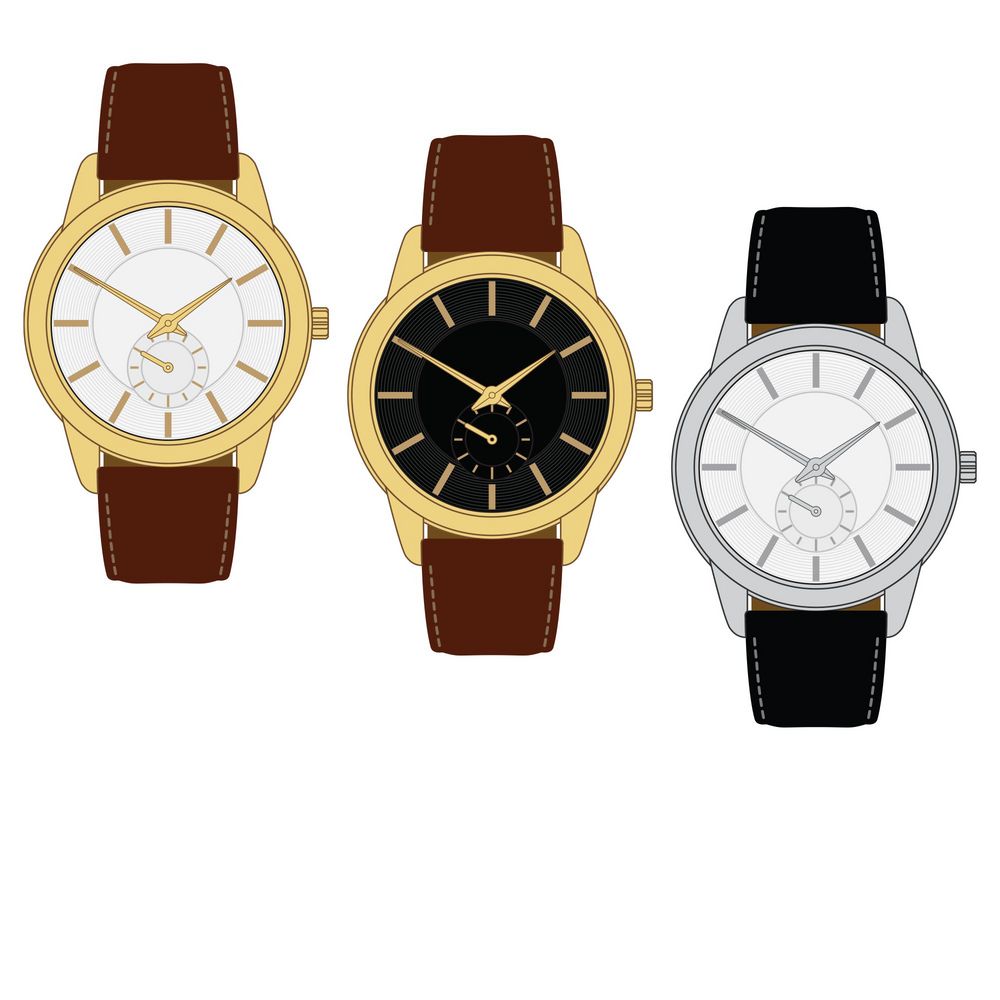 • Ремешок из натуральной кожи с тиснением под кожу крокодила. Коричневого цвета для золотистого корпуса и черного цвета для серебристого корпуса.