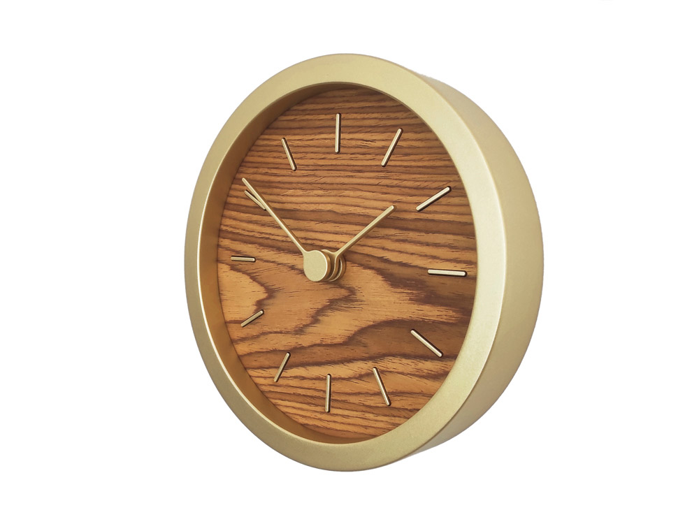 Часы Gracie - это гармоничное сочетание теплого натурального шпона и приглушенного золотистого обрамления. Выбор данной модели часов для оформления интерьера поможет сделать помещение более интересным и харизматичным. Настольные часы коллекции Bronco будут хорошо смотреться как в офисном помещении, добавляя ему тепла и уюта, так и в домашнем кабинете или гостиной, подчеркивая хороший вкус хозяина. Материал корпуса: МДФ Механизм: Кварцевый с плавным тихим ходом