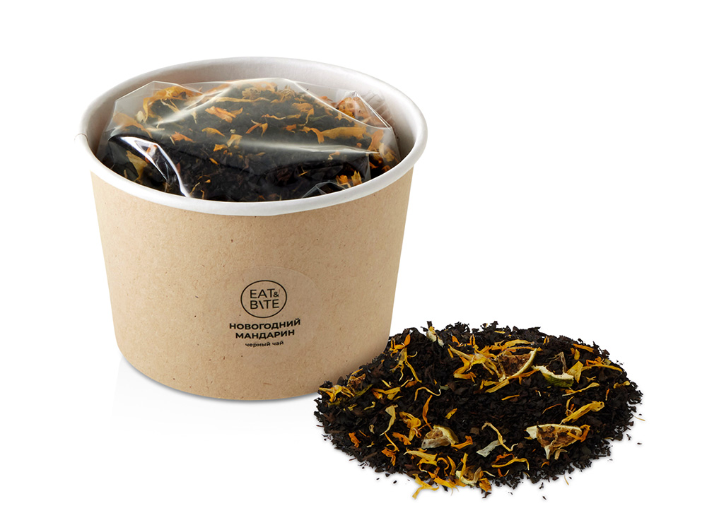 Чай черный Новогодний мандарин в картонном стаканчике, 50 гр. купить оптом и в розницу с нанесением логотипа в Нижнем Новгороде